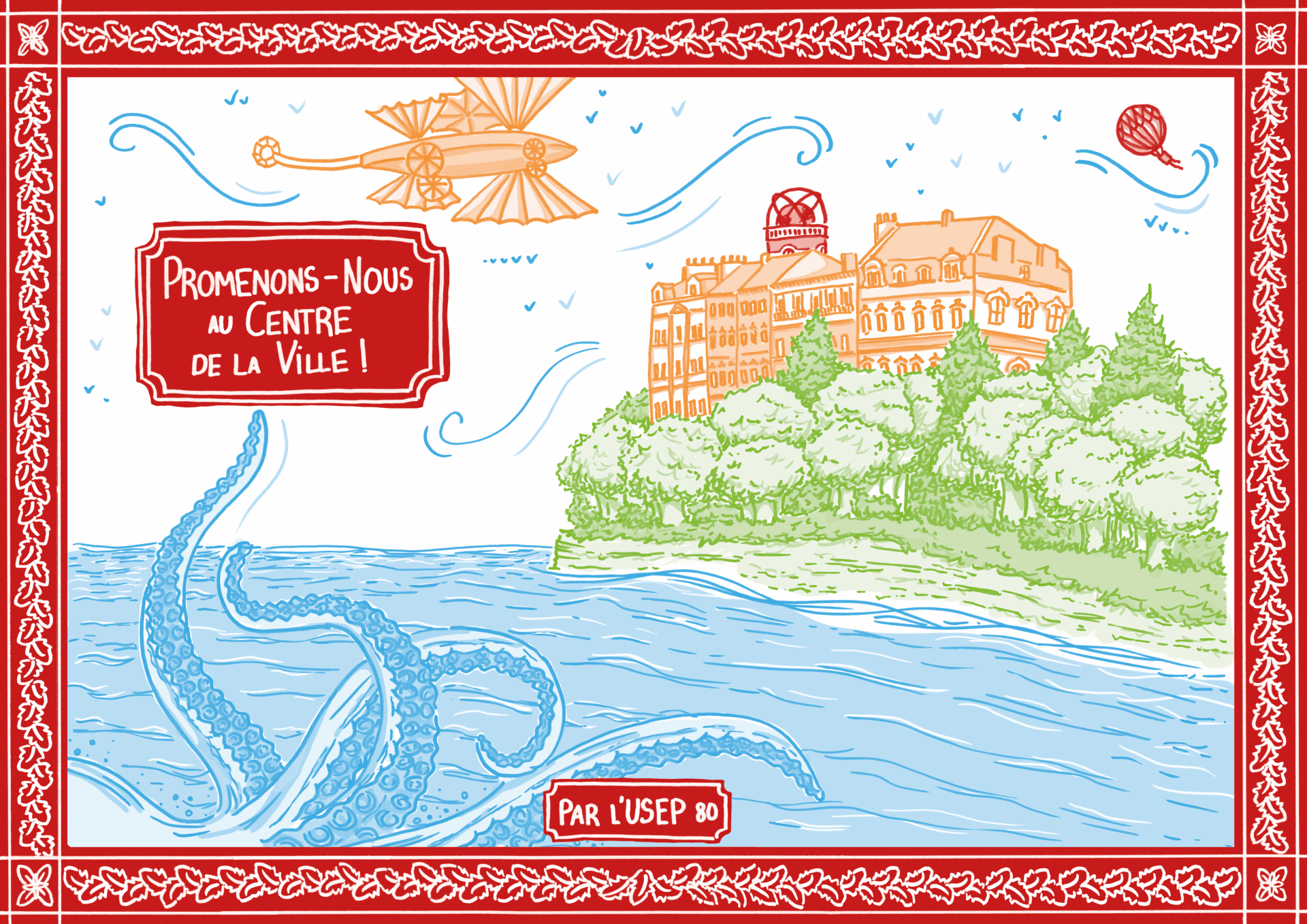Le carnet de randonnée a été réalisé dans le but d’offrir un parcours sportif et culturel qui met l’accent sur la richesse du patrimoine amiénois, et surtout sur l’héritage de l’auteur. Pensé comme un carnet d’illustration, chaque monument a été redessiné et mis aux couleurs de l’USEP. La mise en page aussi reprend l’univers de la science-fiction et de l’aventure. Aussi, Jules Verne y apparaît comme le narrateur, et est illustré comme se baladant de pages en pages.
