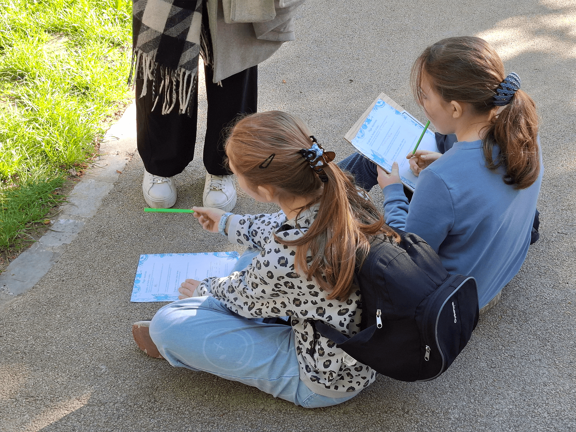 Une fois la lecture finie, les enfants repartent pour la prochaine étape qui sera soit une énigme (à remplir sur une fiche réponse), soit un récit, soit un exercice sportif à faire en groupe.